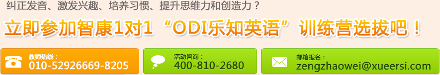 | 班次安排 | ODI英才一班學(xué)習(xí)時間:每周六15:00——17:00(1—2年級) ODI英才二班學(xué)習(xí)時間:每周日10:00——12:00(3—4年級) ODI英才三班學(xué)習(xí)時間:每周日13:00——15:00(4—5年級) |